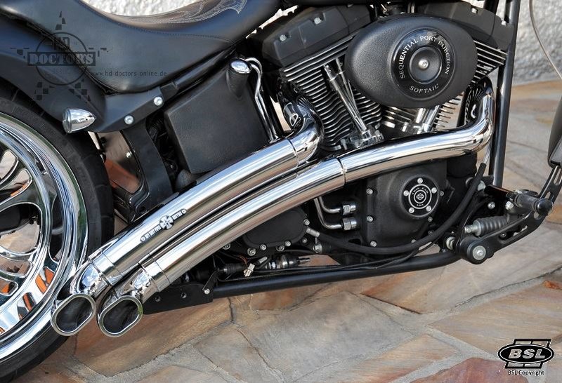 BSL Auspuffanlagen passen generell auf allen Harley Davidson Softails®, Twin Cam® so wie bei Standard S&S und RevTech Motoren. Bei Motoren von TP Engineering kann eine Sonderanfertigung nötig sein, weil die Kühlrippen etwas länger sind als bei den meisten heute erhältlichen Motoren.