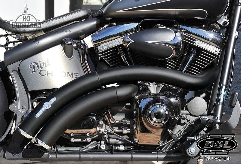 BSL Auspuffanlagen passen generell auf allen Harley Davidson Softails®, Twin Cam® so wie bei Standard S&S und RevTech Motoren. Bei Motoren von TP Engineering kann eine Sonderanfertigung nötig sein, weil die Kühlrippen etwas länger sind als bei den meisten heute erhältlichen Motoren.