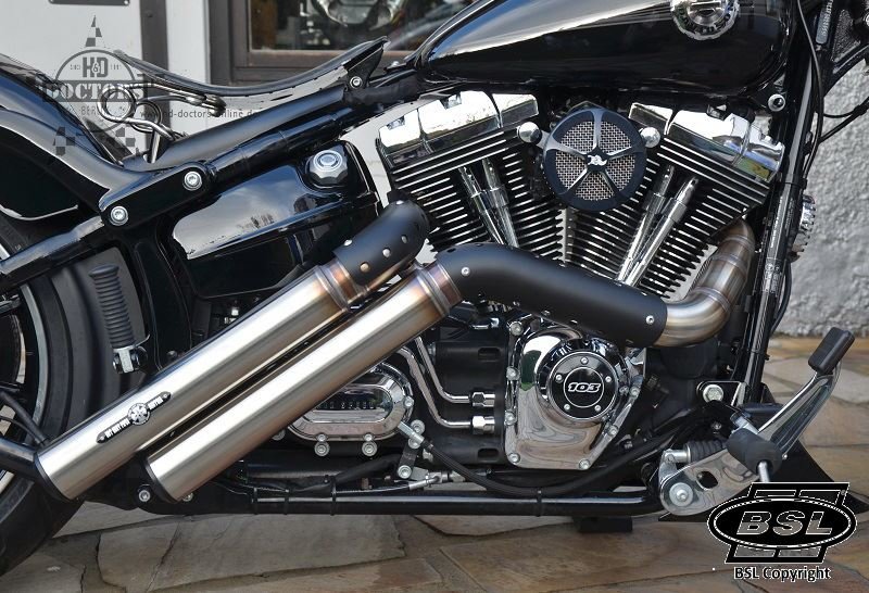 BSL Auspuffanlage Softtail mit Eu EBE Headpipes 2 1/2" VA satin